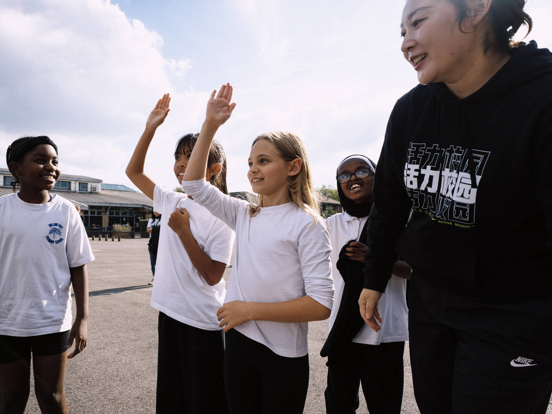 图为“活力校园国际交流”活动的篮球课堂此次赴英交流的中国体育老师,在给当地学生上课时,明显感受到孩子们更强的主动性与创造性。杭州四季青小学校长施海红认为,这源于英国长期注重学生自主探索的教学方法。