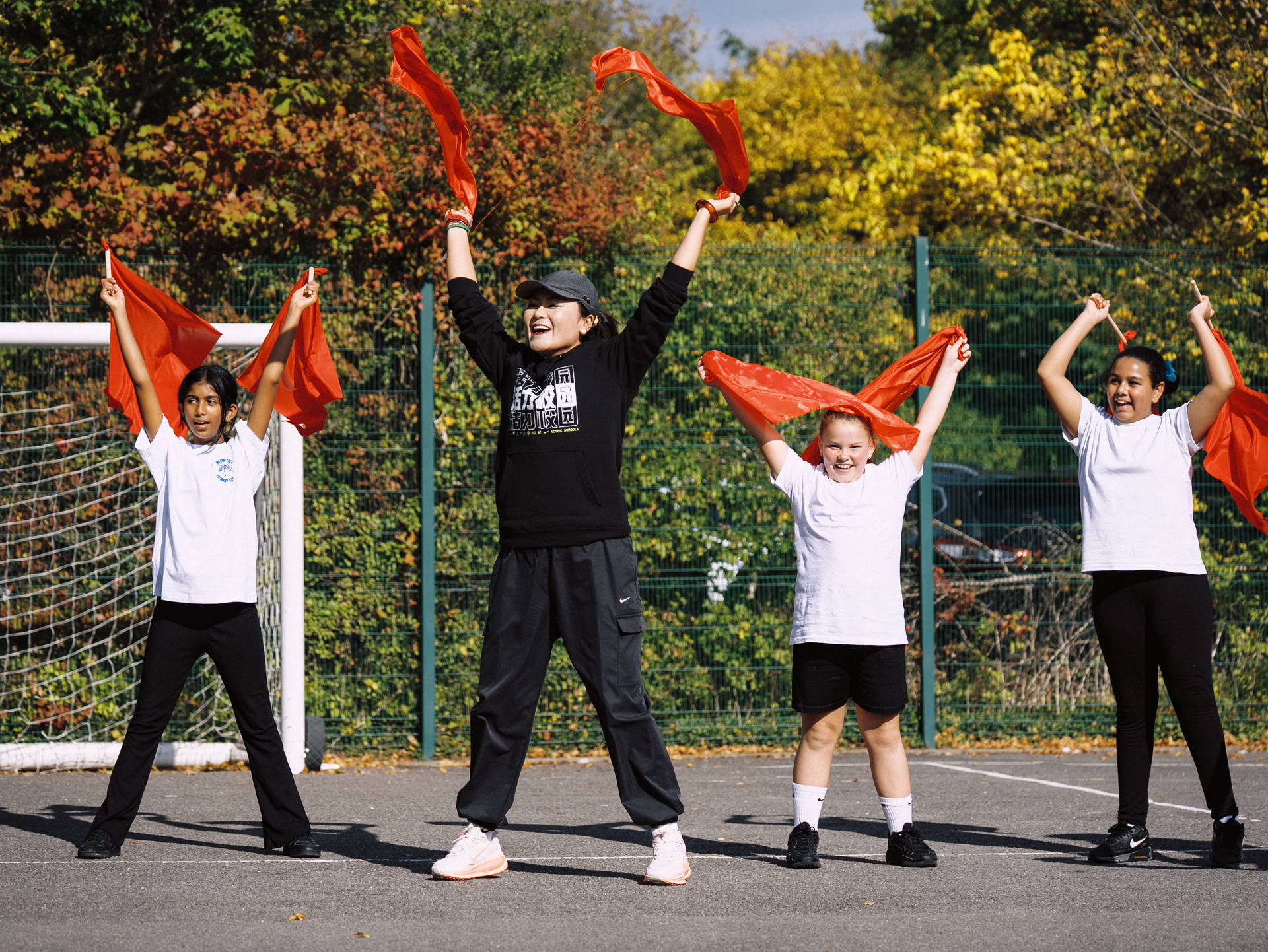 图为“活力校园国际交流”活动的体育课堂近日,“活力校园国际交流”活动组织60名来自中国的体育教师、教研员、校长和专家前往英国,开展学校体育考察交流。活动中,中国老师们通过现场授课、观摩课程、与当地教育专家研讨等形式,既分享中国体育教学的创新思路,又深入了解英国体育教育体系的特色。